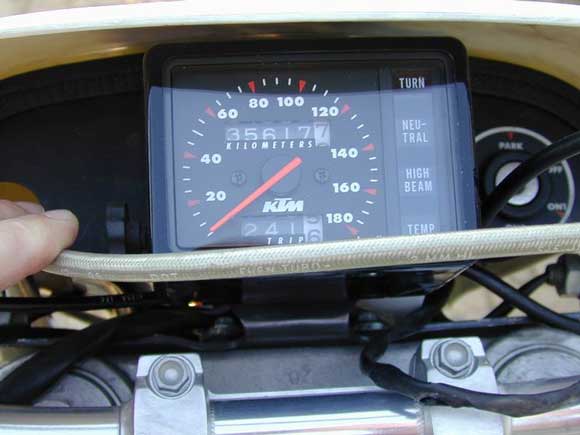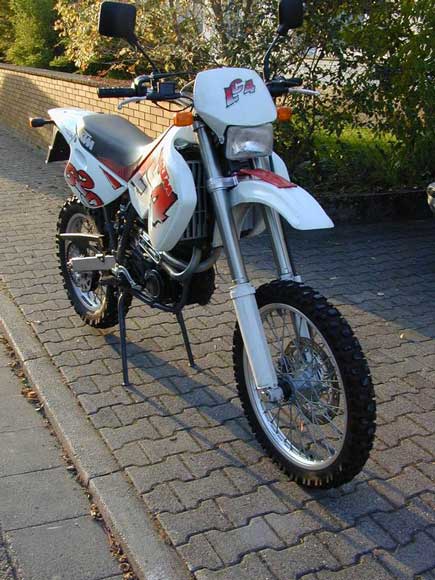 Das Bild, sowie die technischen Daten stellen den Urzustand dar. Meine Version fällt unter die Kategorie Super Moto und steht vorne wie hinten auf 17” Felgen, auf die Straßenreifen montiert sind. Mit dem Gewicht und der Motorleistung die ultimative Kurvenmaschine.